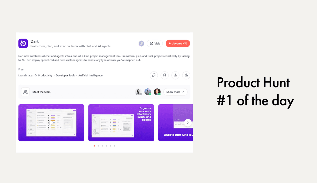 We created the Product Hunt for Dart, an AI-native PM tool, helping them get to #1 product of the day on ProductHunt